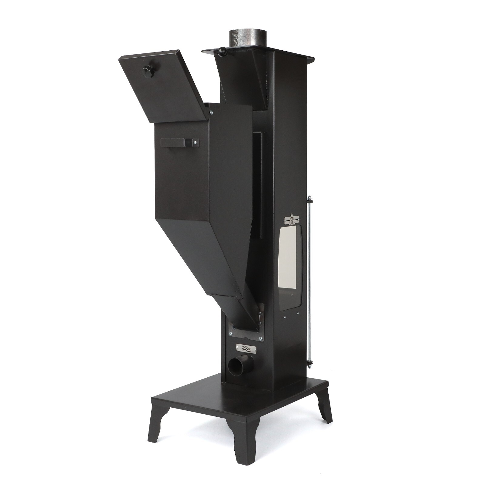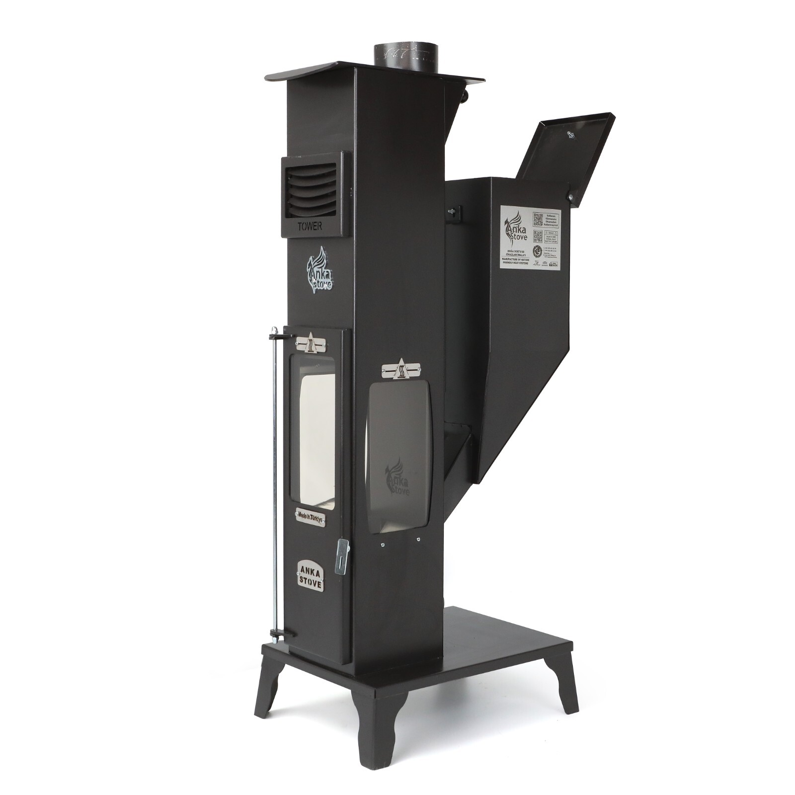 Ce poêle multifonction est conçu pour une utilisation intérieure et extérieure, parfait pour les cafés, restaurants ou tout espace nécessitant un chauffage performant et fiable. Sa structure en acier ST37 de 2,5 à 4 mm garantit solidité et durabilité.